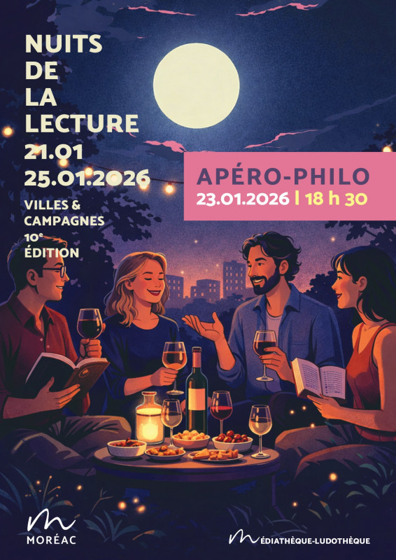 La thématique 2026 des Nuits de la lecture est "Ville et campagne". A travers la lecture d'extraits de livres nous discuterons des liens entre les citadins et les ruraux, des liens que nous entretenons vers les villes et les campagnes. Cette séance sera animée par Aurélia Minnebois pour le côté philo et binôme avec la bibliothécaire Solenn pour la sélection et la lecture d'extraits littéraires.