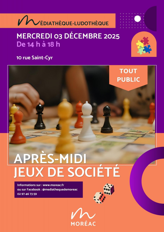 Venez jouer ! La médiathèque ludothèque de Moréac vous propose de découvrir les nouveautés et une sélection de sa collection des jeux de société.