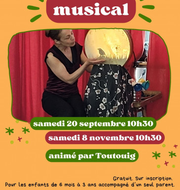 Sur inscription en duo parent-enfant de 6 mois à 3 ans.