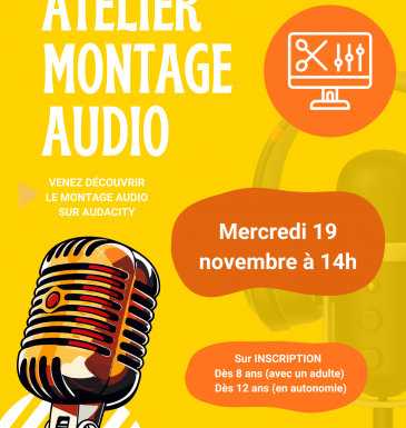 L'ordinateur et le casque vous seront prêtés. Il s'agit d'une initiation sur le logiciel de montage Audacity.