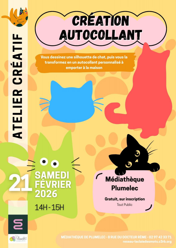 Les participants dessinent leur propre silhouette de chat, puis la transforment en un autocollant personnalisé à emporter à la maison.